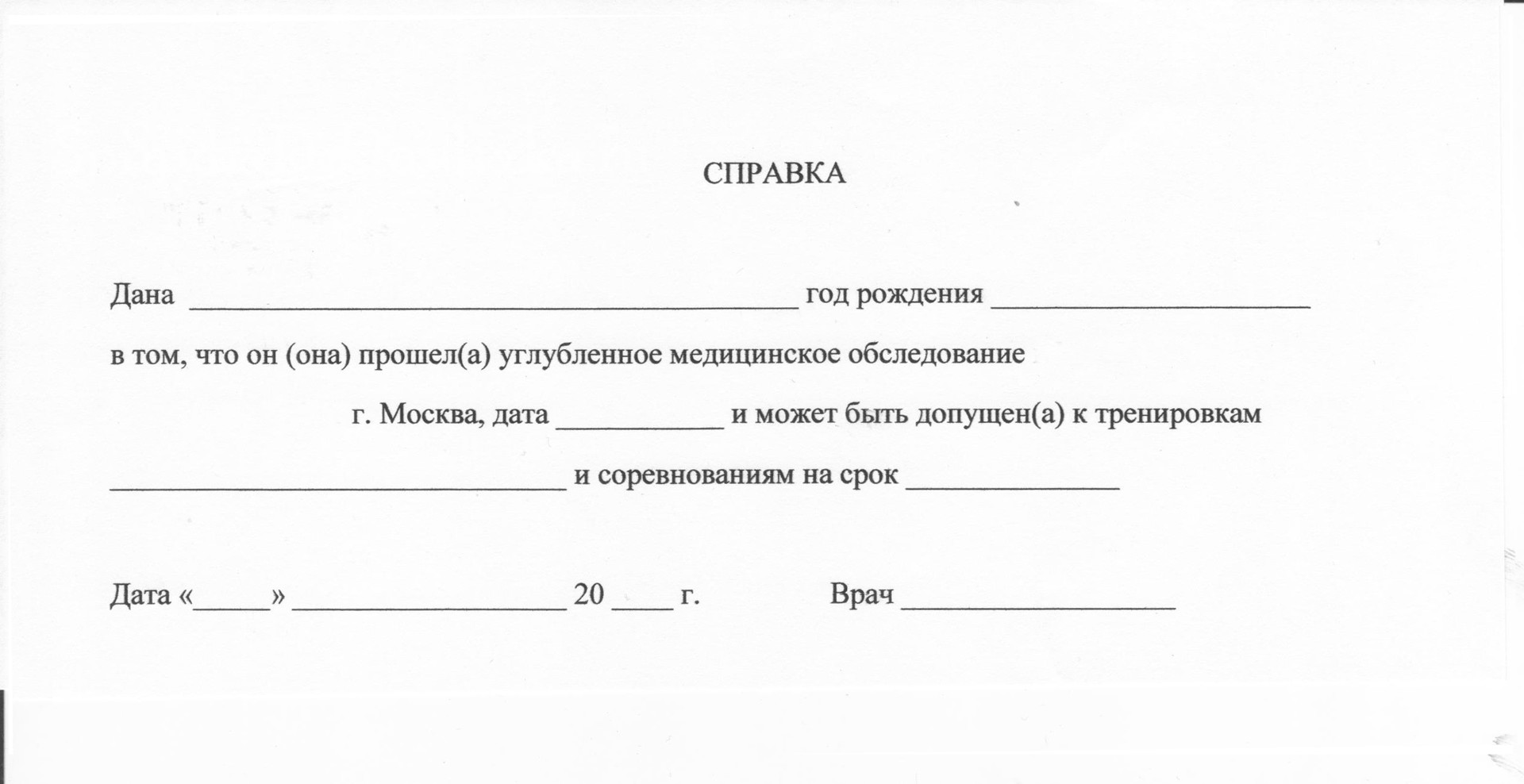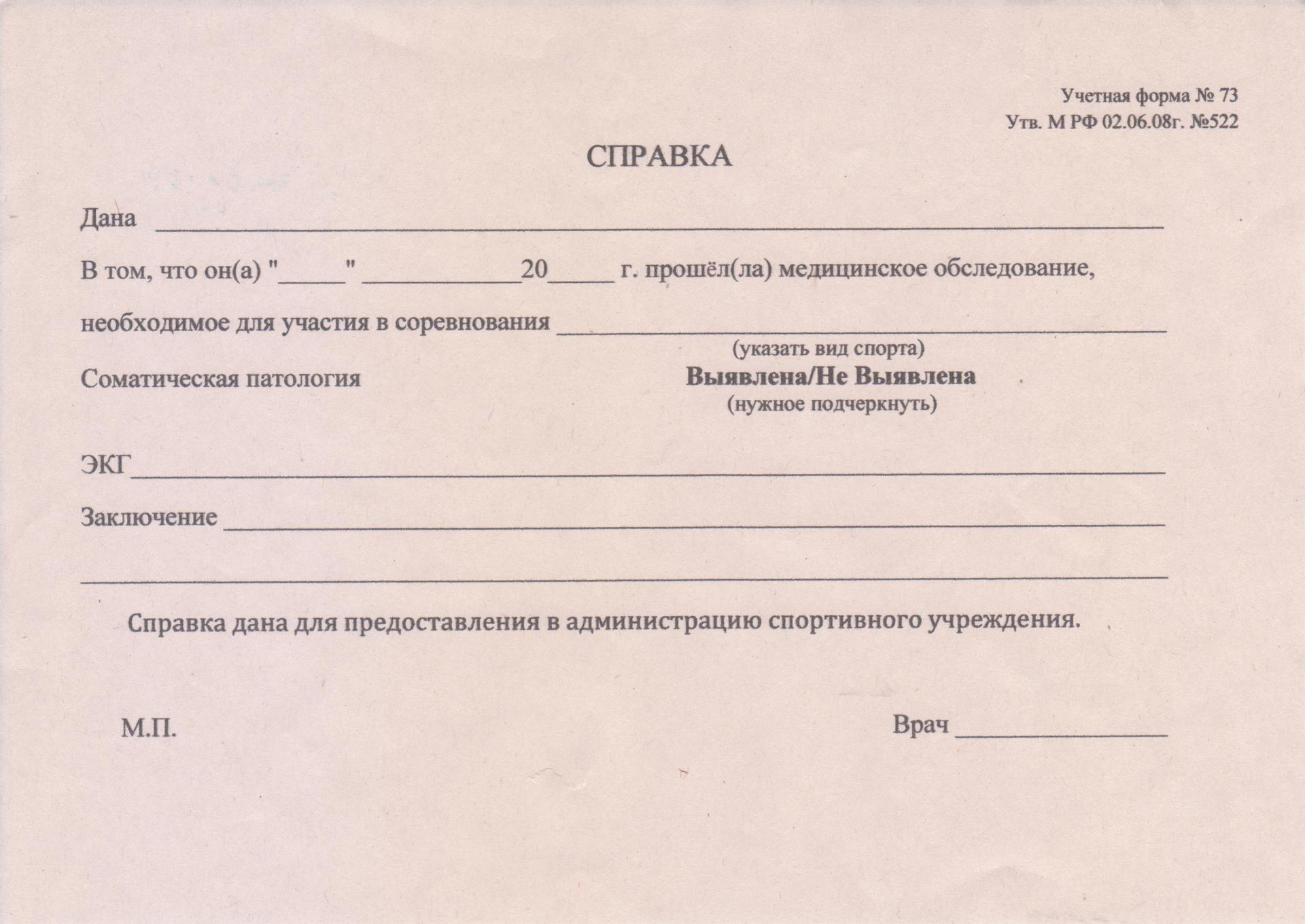 Медицинская справка для соревнований