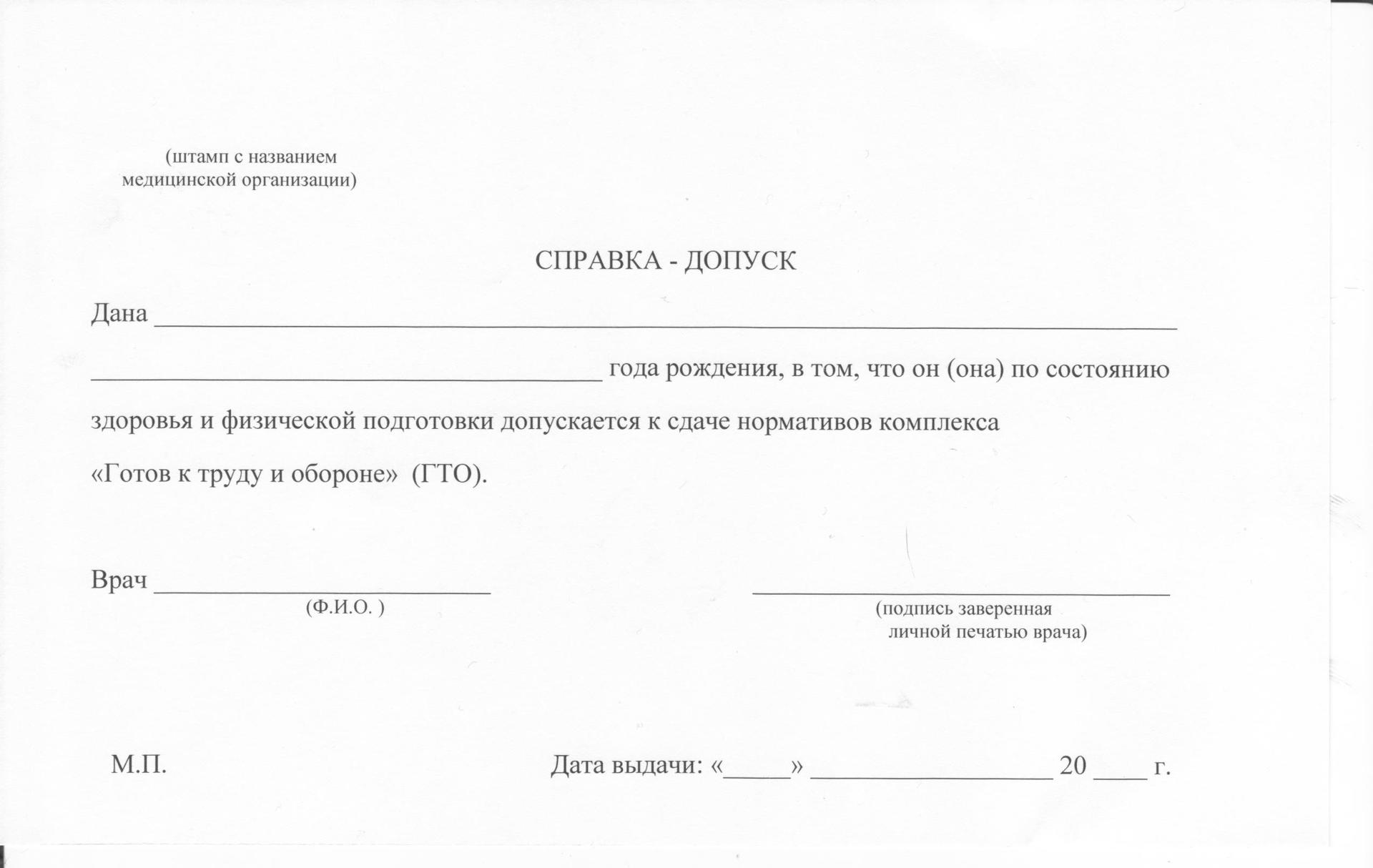 Медицинская справка допуск для соревнований и сдачи ГТО
